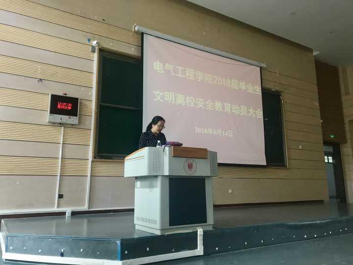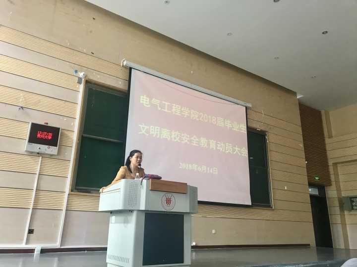 6月14日中午1点,必赢766net手机版2018届毕业生文明离校安全教育动员大会在我校东区西楼105DT报告厅召开。必赢766net手机版党委书记李庆华、副院长刘敏、学生科科长苟敏、教学科研科科长胡浩、辅导员陈倩、苏阳以及全体2018届毕业班同学参加大会,辅导员陈倩担任此次大会主持。
