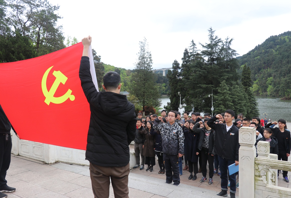 走进庄严的烈士陵园,大家神情肃穆。在蒋飞的主持下,全体成员在烈士墓碑前聆听先烈英雄事迹,重温入党誓词并瞻仰革命烈士墓碑。在庄严的烈士纪念碑前,全体成员向革命先烈敬献花篮,鞠躬默哀,深切悼念为革命事业前赴后继、英勇献身的革命烈士,表达对烈士的哀思之情。