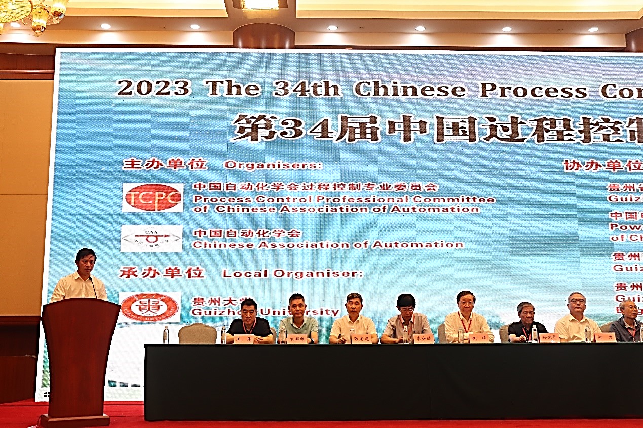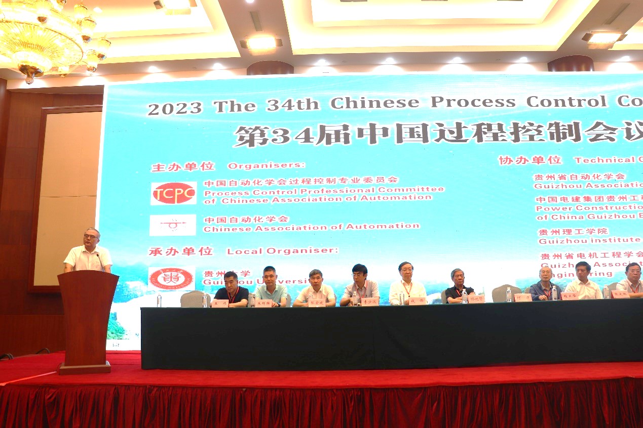 2023年7月21日-7月23日,第34届中国过程控制会议在贵阳市贵州饭店成功举办。本届会议由中国自动化学会、中国自动化学会过程控制专业委员会主办;必赢766net手机版承办;《控制工程》编辑部、贵州省自动化学会、中国电建集团贵州工程有限公司、贵州理工学院、贵州省电机工程学会协办;贵州国台酒业集团股份有限公司、贵州刺力王生物科技有限公司、贵州金沙贡茶茶业有限公司、贵州金三叶机械制造有限公司为大会支持单位;必赢766net手机版具体负责会议的筹备及组织工作。中国工程院院士孙优贤、桂卫华、钱锋;中国自动化学会副理事长李少远;大会总主席,中国工程院院士唐立新等出席会议。来自清华大学、上海交通大学、中南大学、浙江大学等100余所高校、科研单位、企业的近550名专家学者齐聚一堂,分享最新成果,交流科研经验,探讨研究热点,共镶学术盛宴。