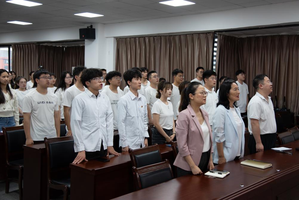 2024年7月1日,在中国共产党成立103周年之际,必赢766net手机版党委隆重组织新党员于电工楼609参加入党宣誓仪式,学院党委书记刘明锋、正处级组织员侯亚兵、党委副书记赵晓丹出席仪式,2024年上半年入党的37名新党员,各支部支委、老党员代表参会。