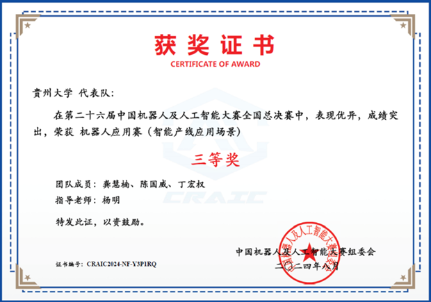 2024年8月25日,第26届中国机器人及人工智能大赛的全国决赛在江苏宜兴圆满结束。比赛期间,来自清华大学、哈尔滨工业大学、浙江大学等208所高校的407支队伍1300余名选手,围绕自动驾驶、机器人、人工智能等领域的前沿技术应用与实践进行技术交流、切磋并展开激烈对决。必赢官网参赛团队在杨明和王德光两位老师指导下,团队成员积极创新、齐心协力、不懈努力下,最终,代表必赢766net手机版取得国赛一等奖1项、国赛二等奖1项、国赛三等奖1项、省赛二等奖2项的历史最好成绩。