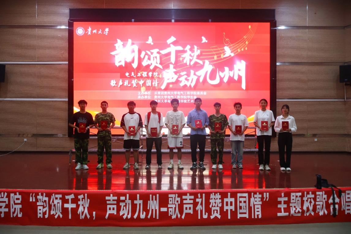 经过激烈的角逐,校歌合唱比赛接近尾声,令人激动的颁奖环节,随着主持人宣布:前三名的班级分别是第一名电气2408班,第二名电气2405班,第三名电气2404班,获奖班级欢呼呐喊,参会人员分享喜悦。最后,学院老师以及团委、学生会对活动给予了高度赞扬,并寄语同学们在今后的学习和生活中继续弘扬爱国精神,立志成为祖国建设的栋梁之材,为实现中华民族伟大复兴的中国梦贡献青春力量。