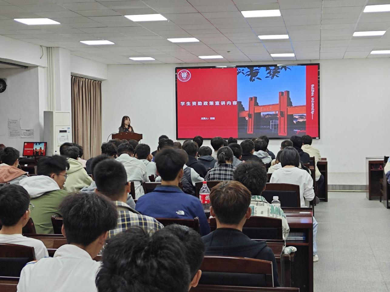 为深入落实教育部关于“进一步加强学生资助工作”的要求,大力宣传党和国家、学校的学生资助政策,让学生全面了解国家和学校的资助政策,确保学生顺利完成学业,学院于2024年10月11日晚在电工楼609会议室召开2024年学生资助政策宣讲会。本次活动由学院资助工作负责人苏阳老师主讲,2024级辅导员罗鑫老师出席,本科生2024级全体班委参加。