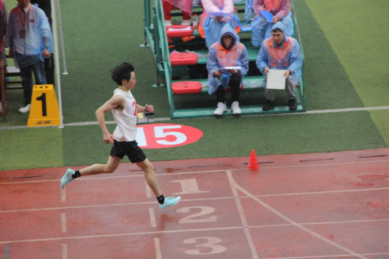 电气类2405班刘育彤、自动化233班刘国理在进行4x400米接力比赛