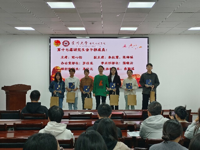 第八届院团总支书记冯平平同学和第十七届院研究生会主席陈心怡同学分别汇报了2023-2024学年的工作成果,全面展示学院研究生组织一年来的亮点工作,充分彰显研究生积极向上的青春风貌。王晶晶为上一届学生干部成员颁发聘书和礼品。